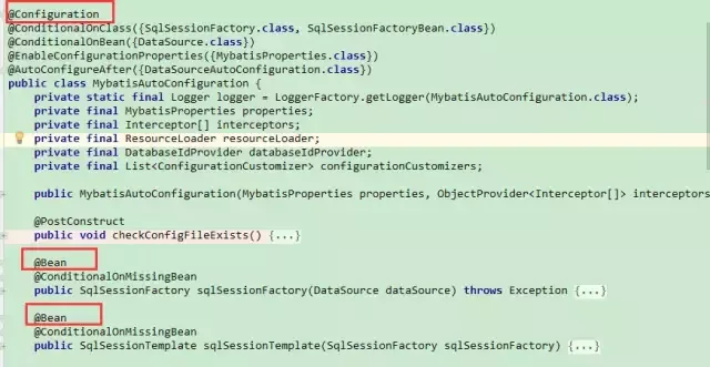 里面有MybatisAutoConfiguration这个类,打开这个类看看有些什么东西。