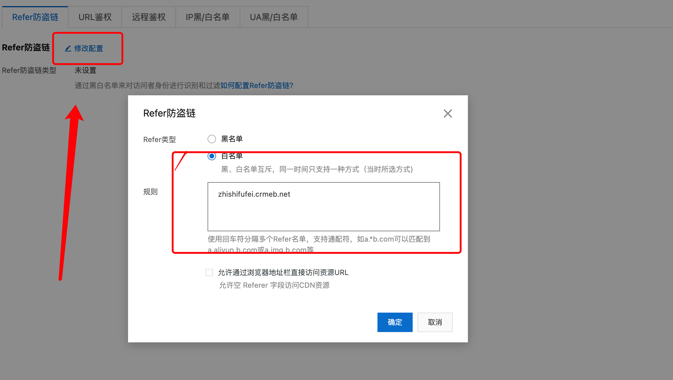 配置白名单,“允许通过浏览器地址栏直接访问资源URL”不要勾选