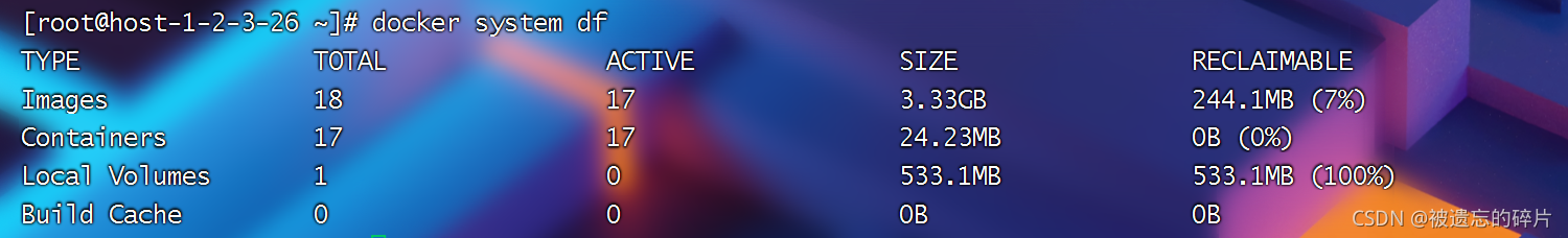 TYPE(类型) TOTAL(总数)ACTIVE(活跃数)SIZE(占用空间)RECLAIMABLE(可回收的大小)
