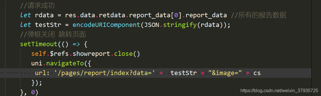 let testArray = JSON.parse(this.$route.query.footerData)//JSON.parse()转成数组首先是let一个数组,这个数组是我要传递给另一个页面的参数,如果直接传就会变成[object object],所以我们需要通过JSON.stringify(数组)来把这个数组变成一个字符串,把它变成字符串后,如果直接传递,正常来说是没有问题的,但是当我们碰到有特殊符号的时候,比方说我们其中有一个数据是一串网址,那转换就会遇到问题,所以我们需要使encodeURIComponent()函数把转换出来的字符串进行编码,encodeURIComponent()函数可把字符串作为URI 组件进行编码,该方法不会对 ASCII 字母和数字进行编码,也不会对这些 ASCII 标点符号进行编码: - _ . ! ~ * ' ( ) ,这样我们就能得到我们想要的字符串了。