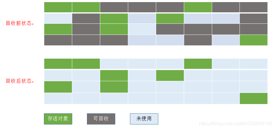 优缺点:没有内存碎片产生,无需分配担保的额外空间,节省内存空间;但需要移动对象的成本,效率低。