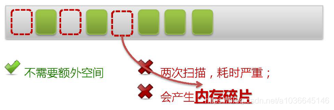 - 内存碎片:清除后会产生大量不连续的内存碎片,这样会导致在后续分配大对象时,无法找到足够的连续内存而不得不提前触发GC。