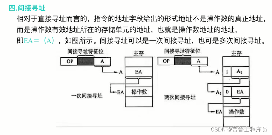 间接寻址,地址存放在主存中,扩大了存储的范围,但访问的速度依旧很慢
