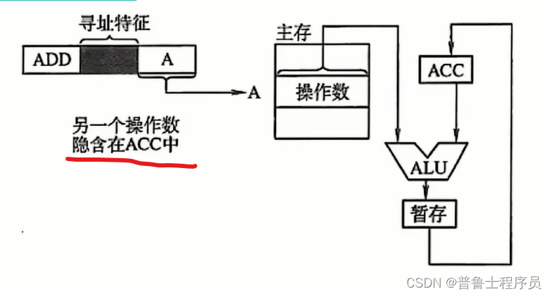 取A1地址的操作数,指令可隐含约定另一个操作数由ACC(累加器)提供,运算的结果存在ACC中。