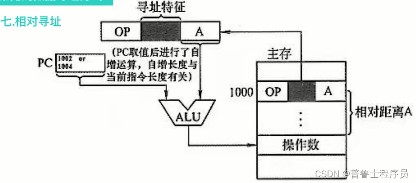 类似于指令寻址的跳跃寻址,PC的内容加上形式地址A形成的有效地址,再根据有效地址取出操作数。因此操作数的地址不是固定的,它会随PC的变化而变化,而指令地址和操作数总相差一个固定值,因此便于程序的浮动。相对寻址广泛用于转移指令。