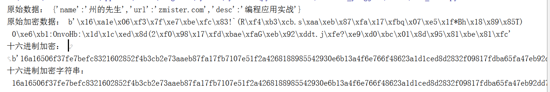 return ciphertext_hex_de我们将原始数据传入其中运行,可以得到加密后的数据,如下图所示: