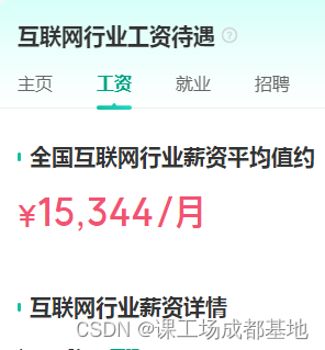 - 互联网行业平均薪资约为15,344/月(数据来自看准网)