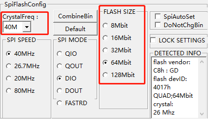 CONFIG_ESP32_XTAL_FREQ=26如果是用官方的烧录软件烧录,还需注意软件界面的配置选项
