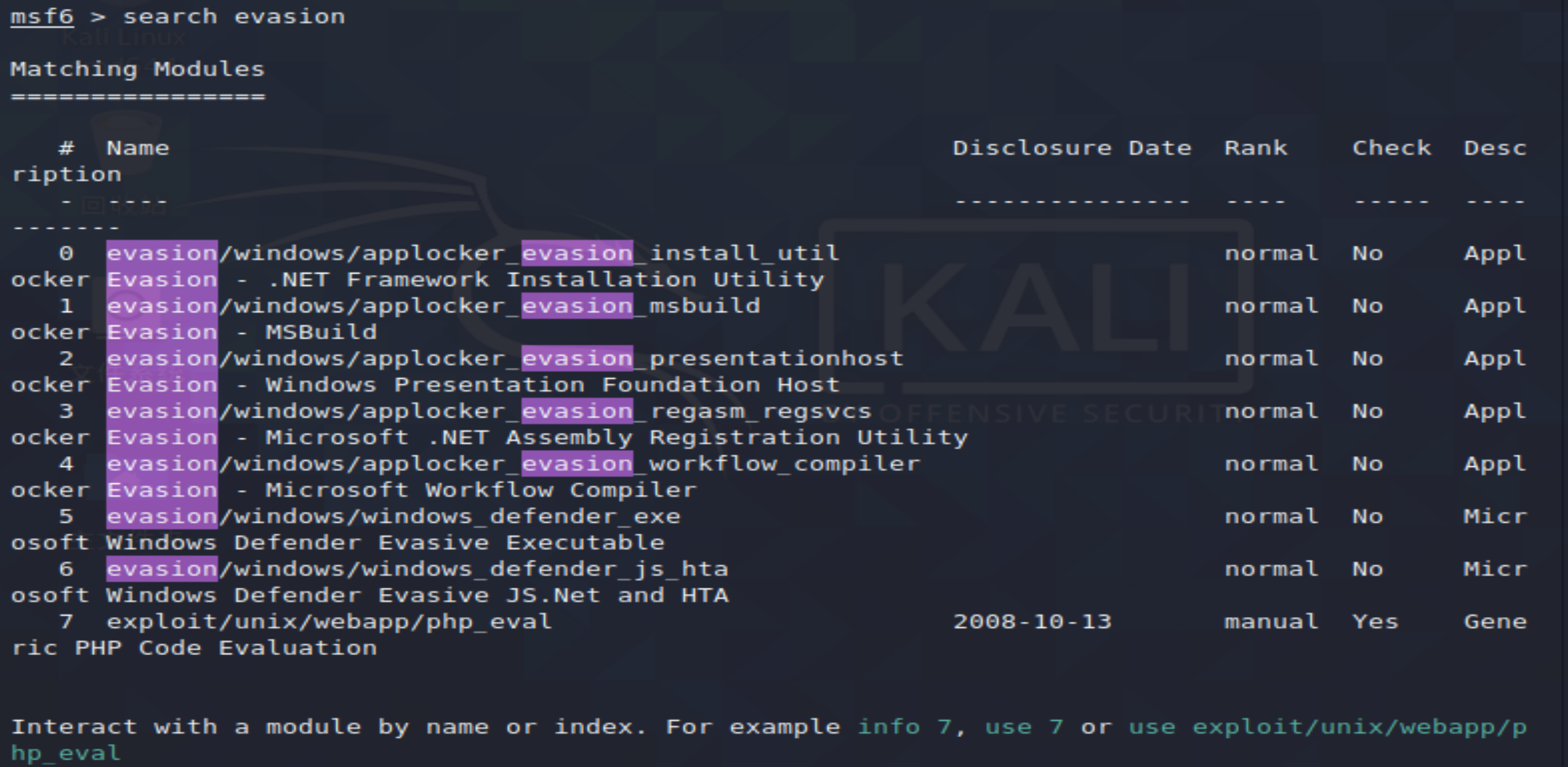 如图,我们可以看到evasion中有7个模块