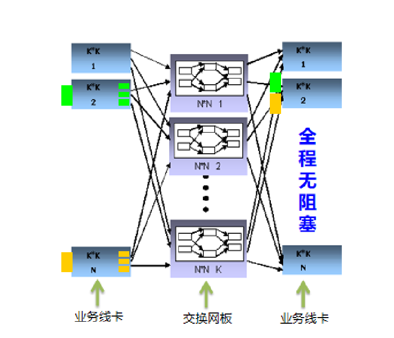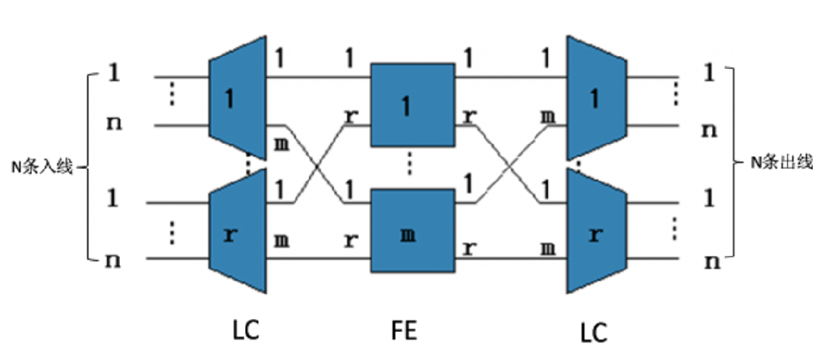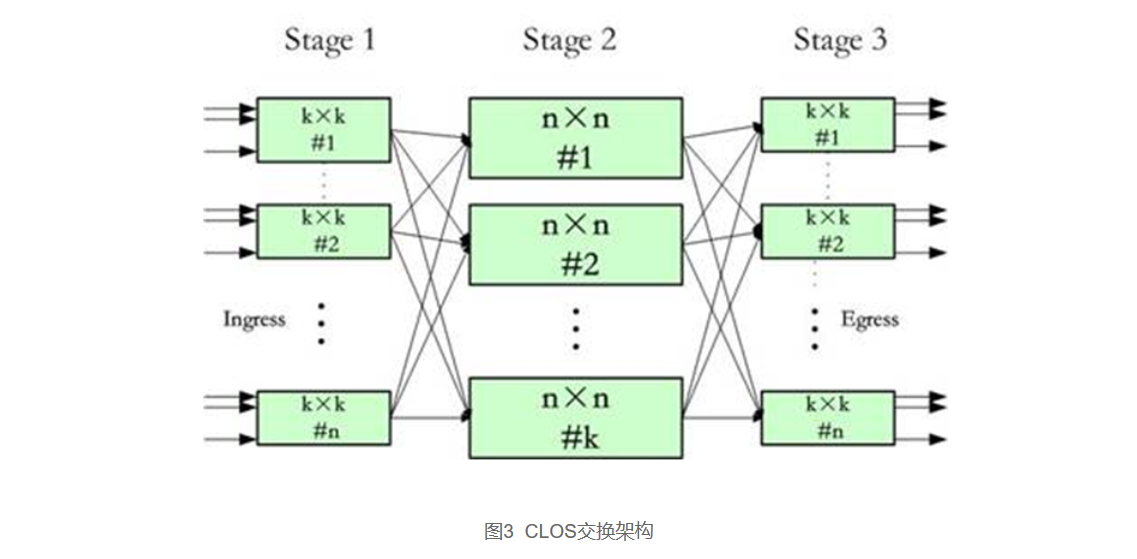 CLOS交换架构可以做到严格的无阻塞(Non-blocking)、可重构(Re-arrangeable)、可扩展(Scalable)。