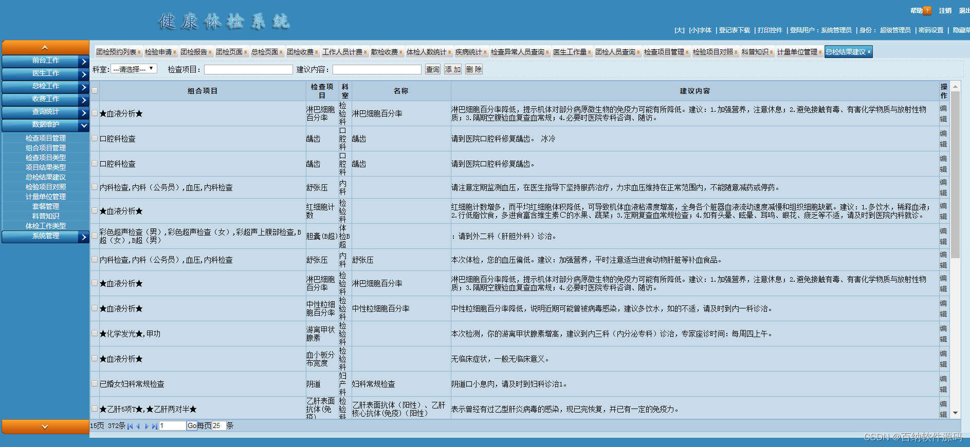 一套成熟在用大型医疗信息管理系统体检系统PEIS源码BS架构