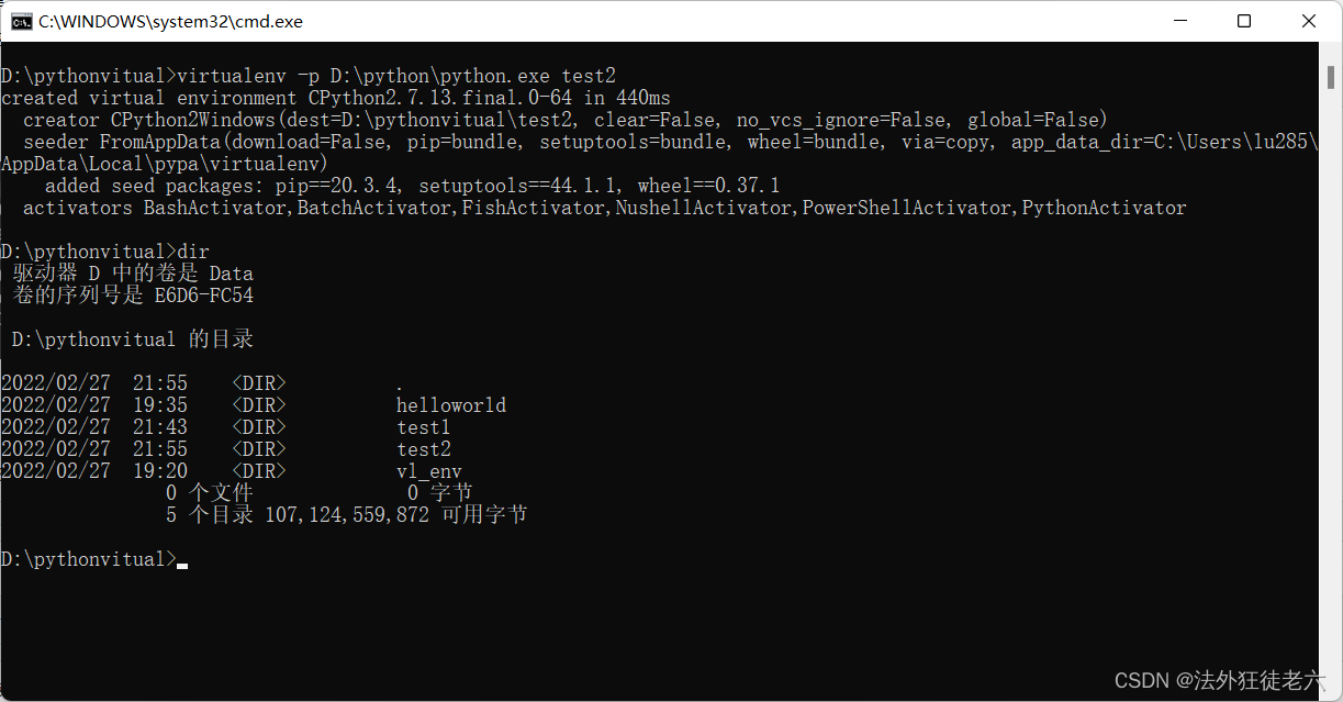 创建成功,启动虚拟环境和退出虚拟环境和上方一样