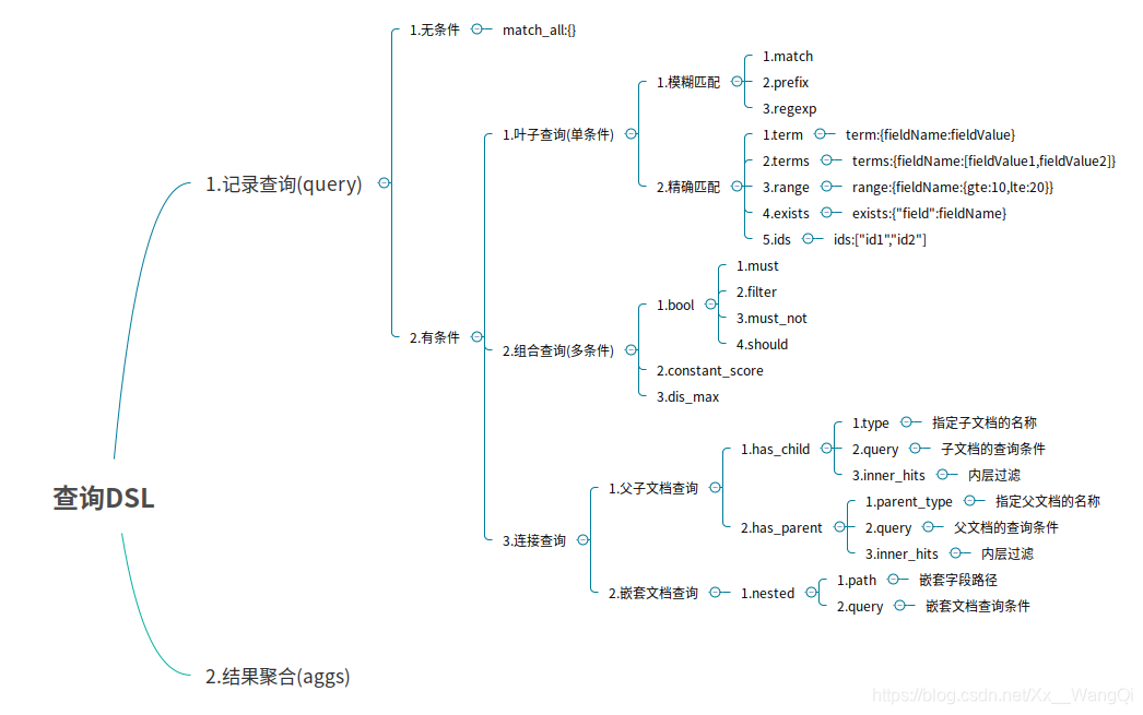 DSL由叶子查询子句和复合查询子句两种子句组成。