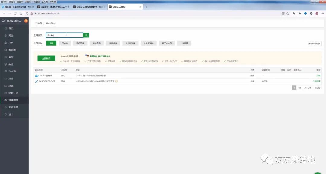 接下来点击软件商店搜索docker选择第一个即可