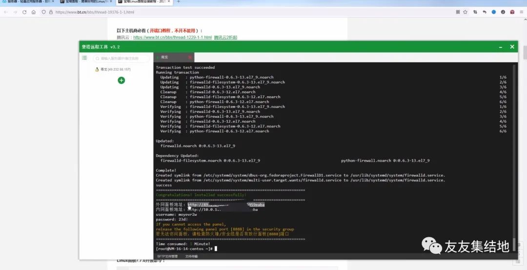 回复y等待即可安装成功后记住外网面板地址,以及用户名密码