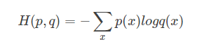 交叉熵就是用来判定实际的输出与期望的输出的接近程度!!!交叉熵刻画的是实际输出(概率)与期望输出(概率)的距离,也就是交叉熵的值越小,两个概率分布就越接近!!!所以可以用交叉熵来作为损失函数!!!以下公式中的H(p,q)就是交叉熵!