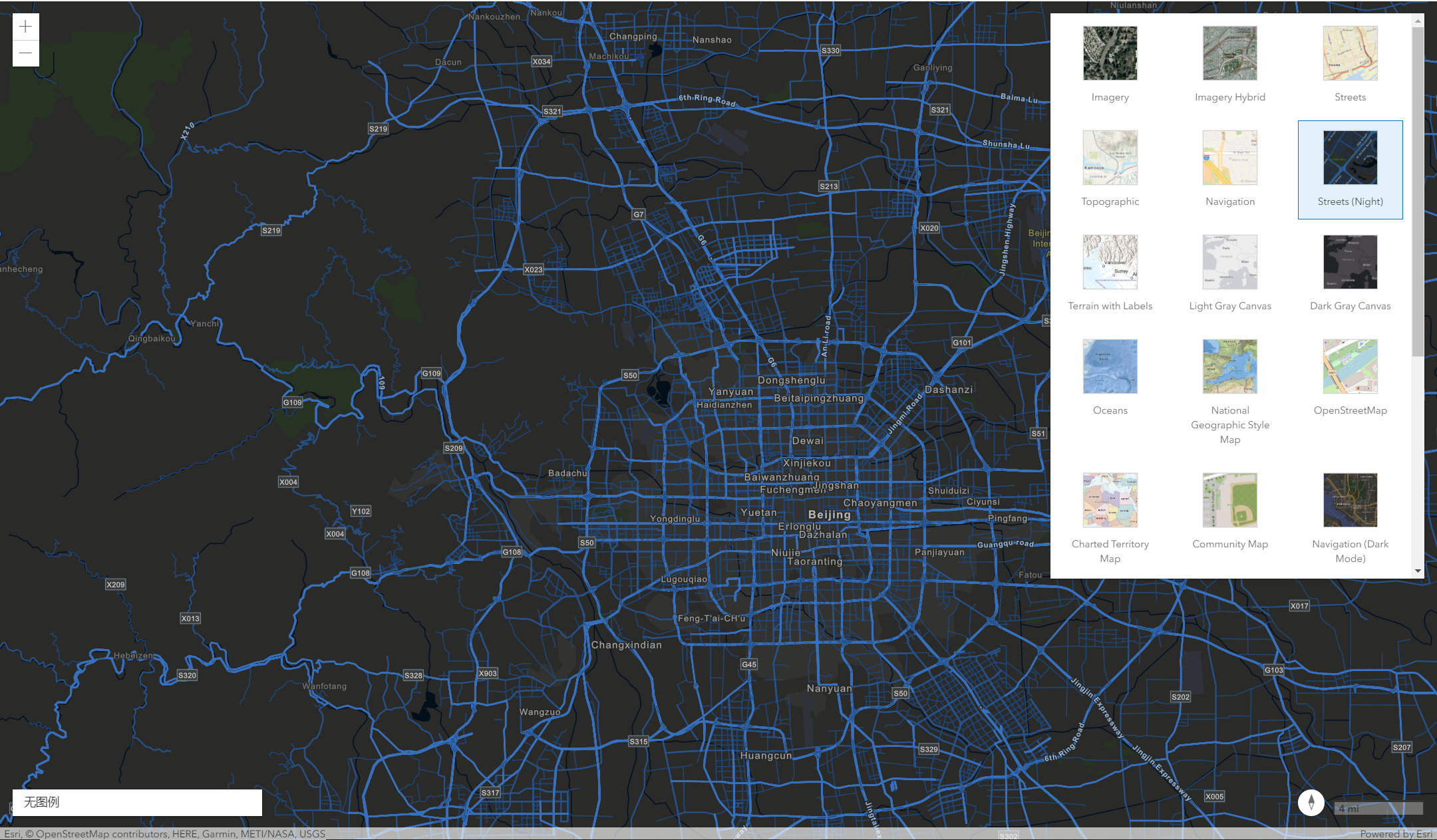 ArcGIS API for JavaScript中的地图底图库部件提供了多种地图,如地形图、街道图、影像图等,每种地图展示的主题也不尽相同。通过调用widgets库中的BasemapToggle类和BasemapGallery类可以实现底图之间的切换。
