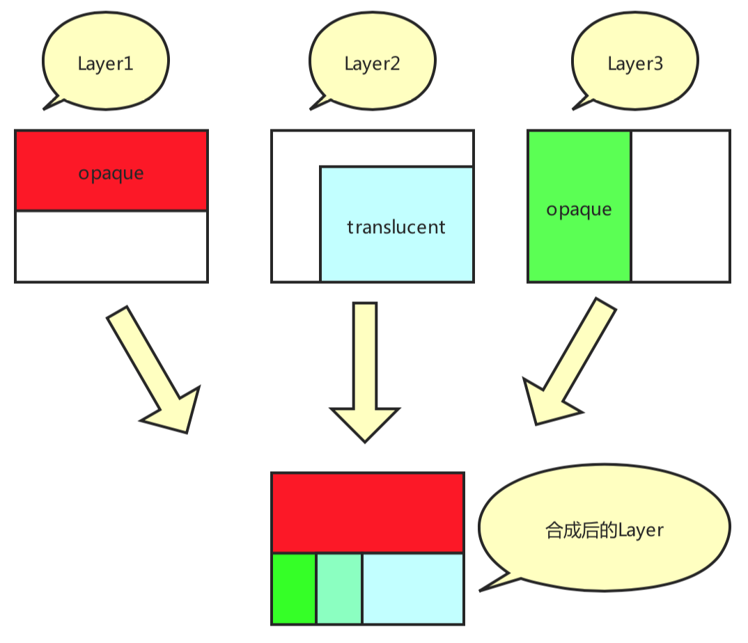 说明:对于opaqueRegion,应为layer是按Z-order排序的,左右排在前面的opaqueRegion 会挡住后面的layer。