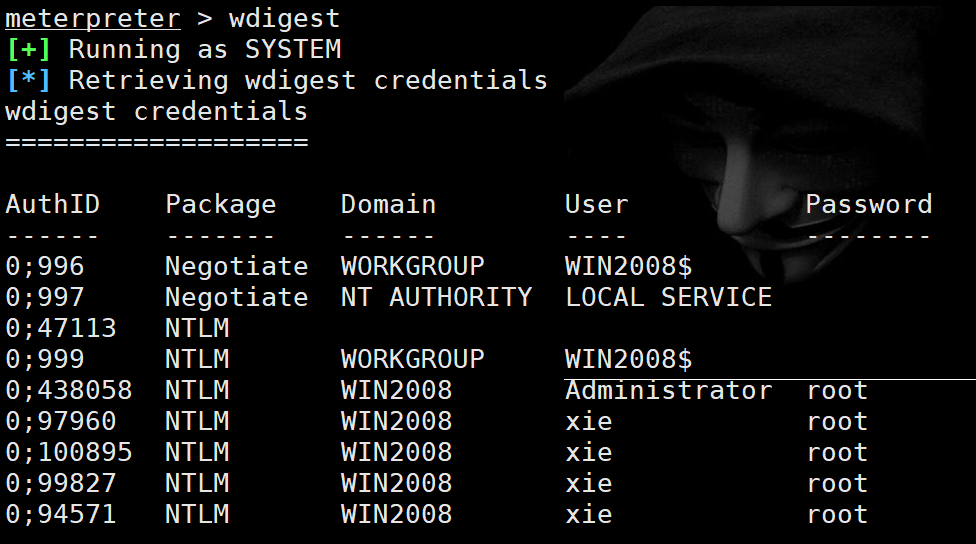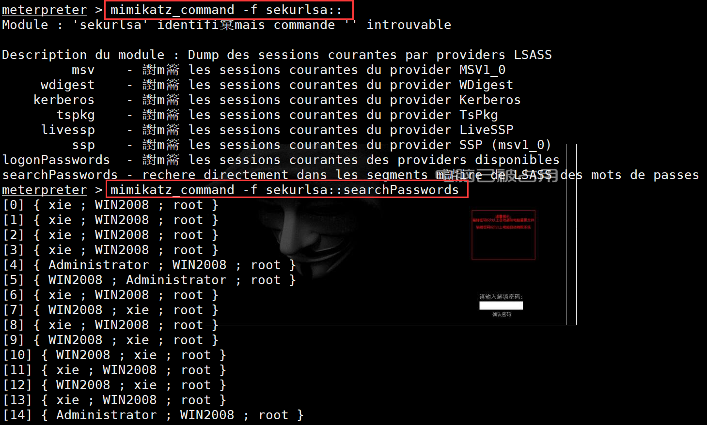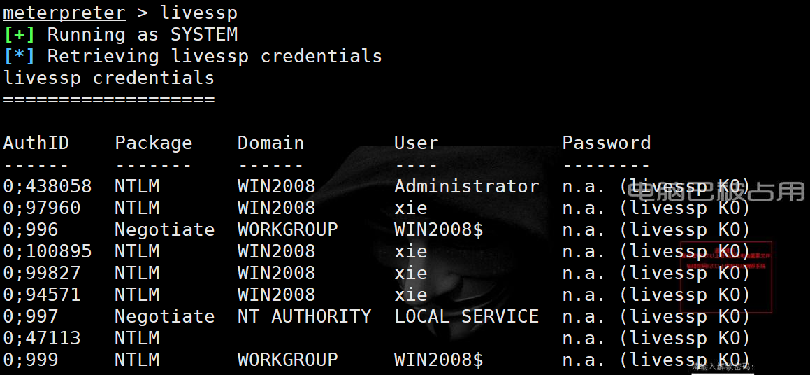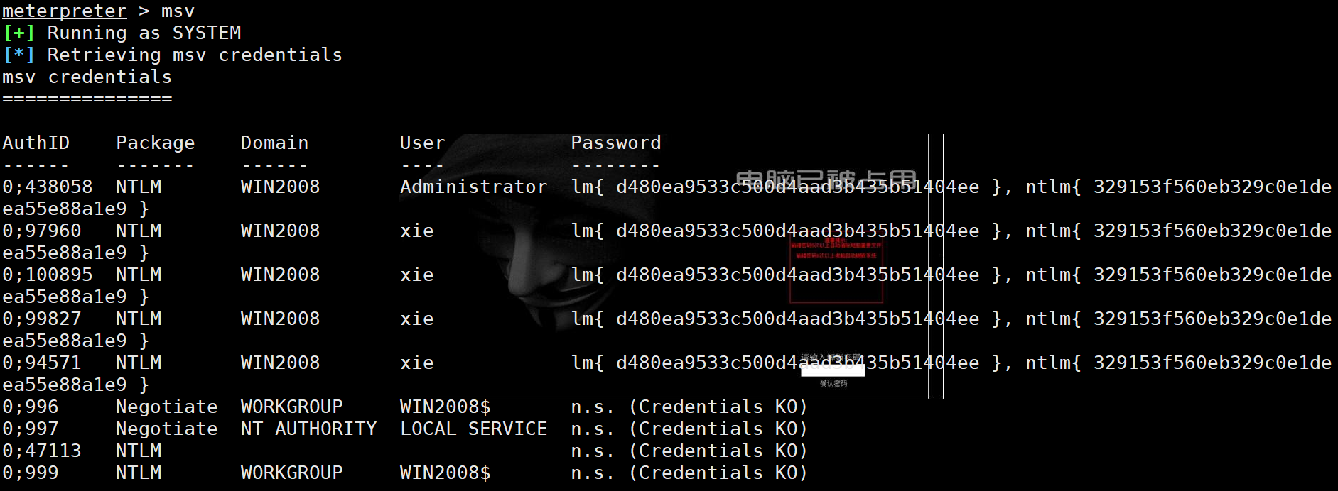 - msv:msv凭证相关的模块,列出目标主机的用户密码哈希