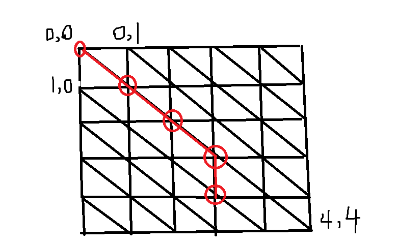 }demo测试:: 构建 5 * 5 的网格数据,从(0, 0)寻找到(3, 4),如下所示: