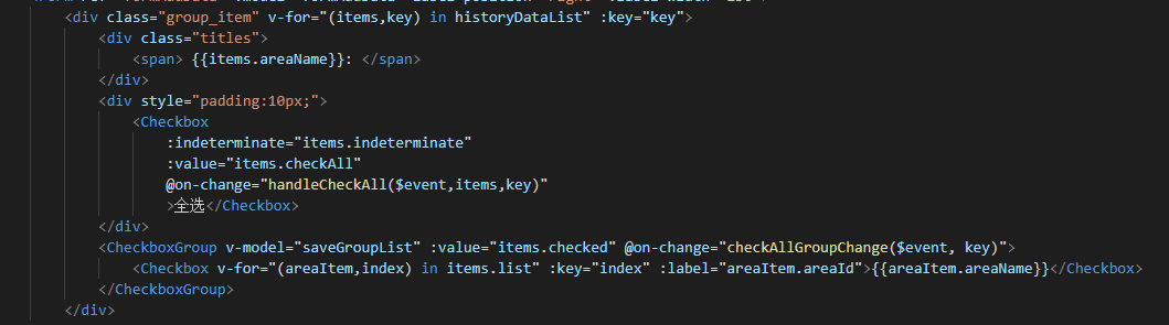 <Checkbox v-for="(areaItem,index) in items.list" :key="index" :label="areaItem.areaId">{{areaItem.areaName}}</Checkbox>