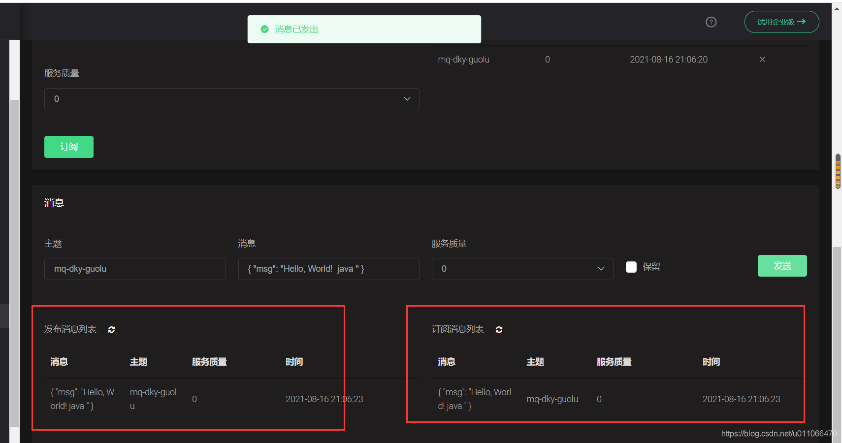mqttPushClient.publish(0,false,"mq-dky-guolu",sendMessage);