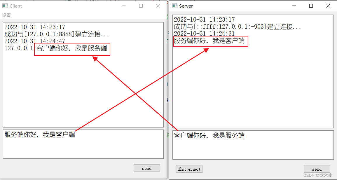});客户端的发送与接收数据与服务器端是相同的,就不再过多阐述了