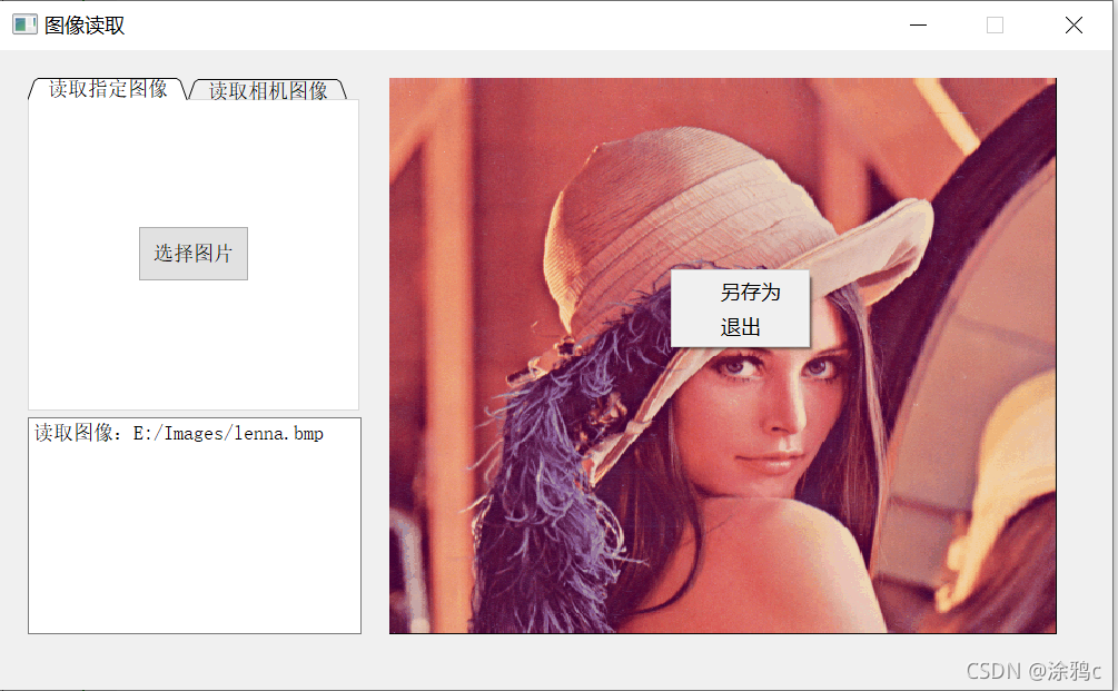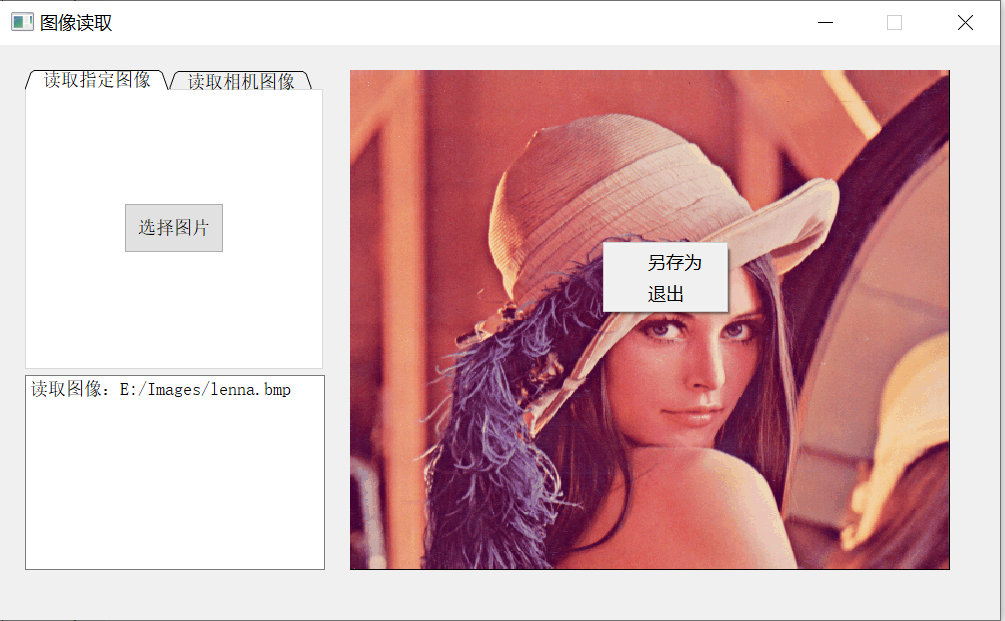 需要实现的主要功能:1.读取指定的图像 2. 读取连接的相机图像 3.图像的保存