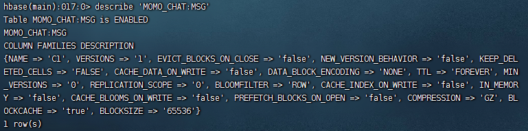 hbase(main):013:0> describe 'MOMO_CHAT:MSG'