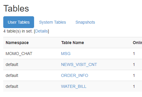 describe_namespace 'MOMO_CHAT'命名空间创建表