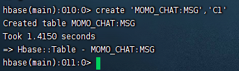 create 'MOMO_CHAT:MSG',{NAME=>'C1',COMPRESSION=>'GZ'}