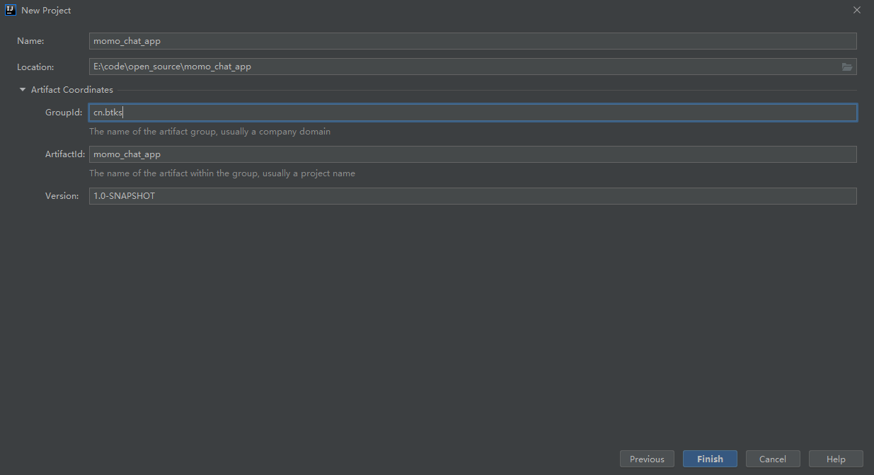 create_namespace 'MOMO_CHAT'