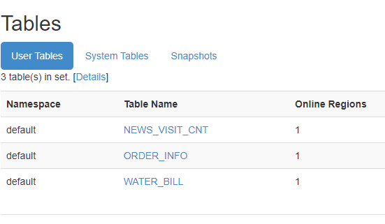 说明:保存很多表,根据业务划分命名空间,便于管理。类似于Hive中的数据库,不同数据库下面可以放不同类型的表。Hbase默认名称空间是default。Hbase还有一个命名空间【hbase】用于存放系统内建表【namespace、meta】