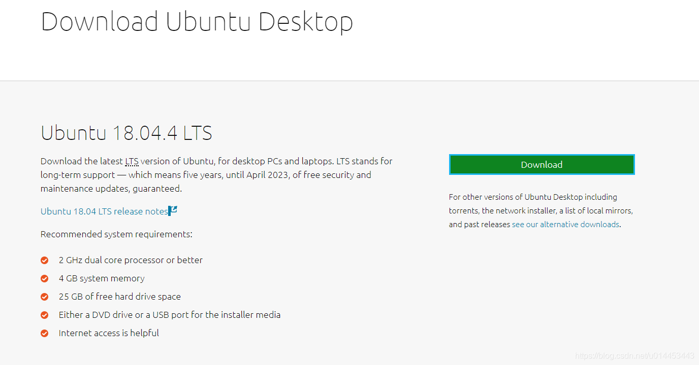 一、下载Ubuntu18.04 LTS系统的iso文件