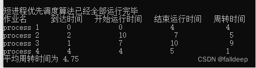 cout << "短进程优先调度算法已经全部运行完毕" << endl;