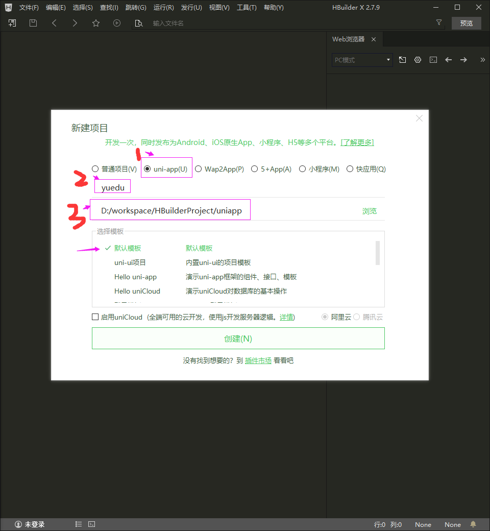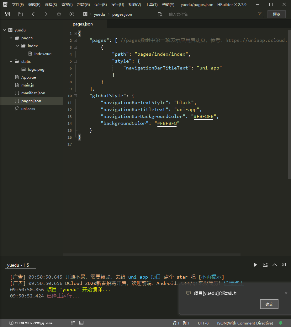 因为默认的名字是uni-app所以我们来修改一下名称:悦读