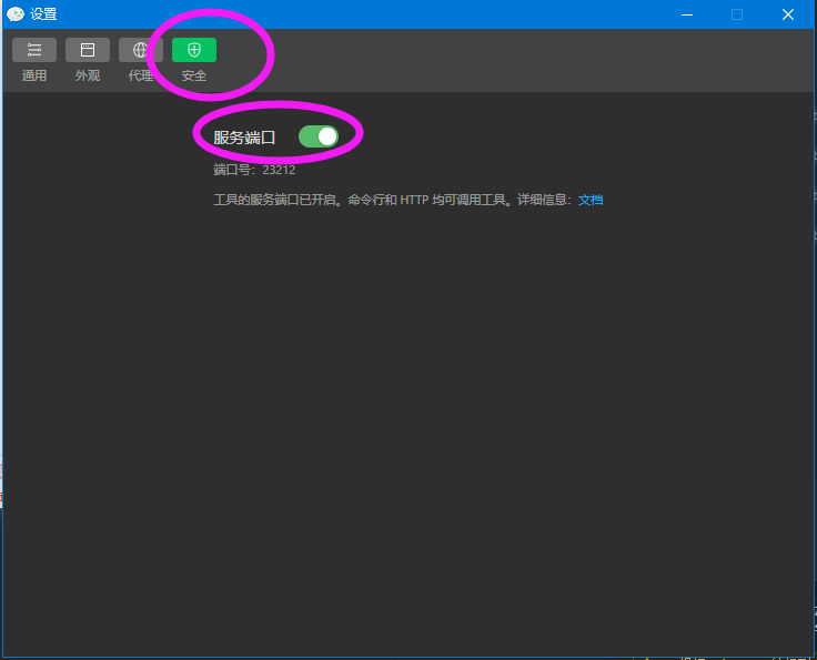 于是需要打开微信开发者工具。把安全里的服务端口打开。就可以了: