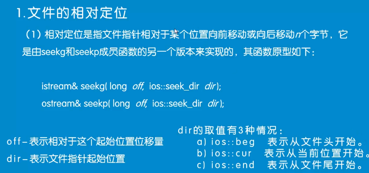iofile.seekg(2,ios::beg);//相对最左边的位置,往右移2位