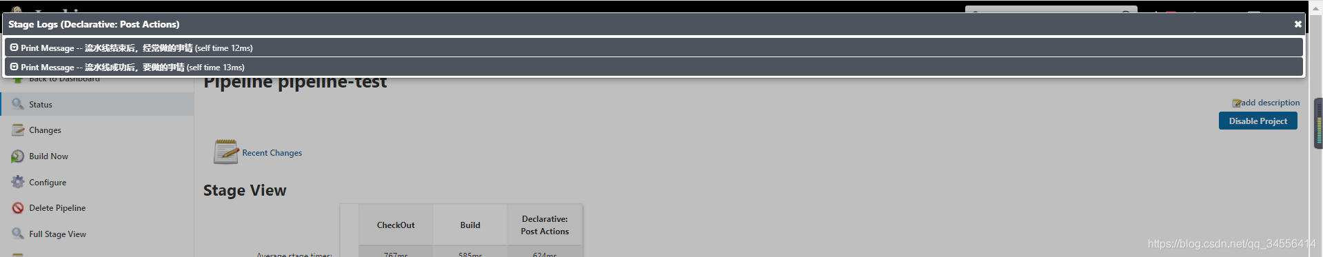 指定post{}(定义好此流水线运行成功或者失败后,根据状态做一些任务)