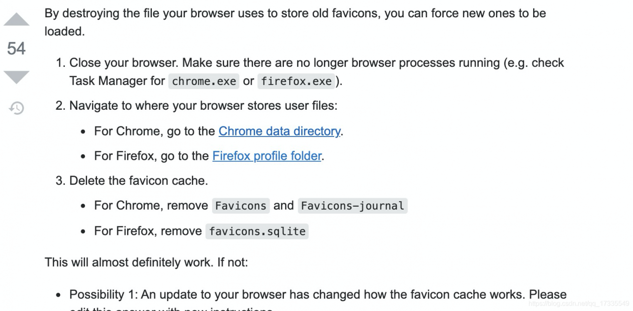 1、给href加上版本,比如href="favicon.ico?v=2", 这个方法适用于很多图片的缓存问题,比如svg icon,每次更新都更改一下后面的版本号。