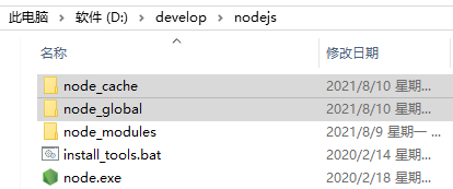 2.1)在node.js下建立node_global和node_cahce文件夹