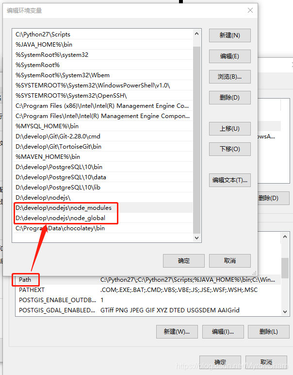 2)npm的全局模块的存放路径以及cache的路径及增加环境变量: