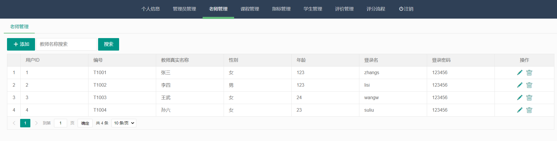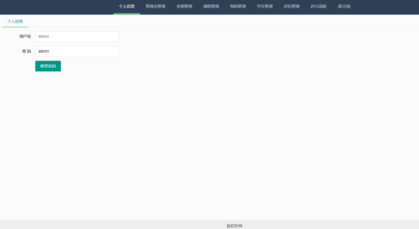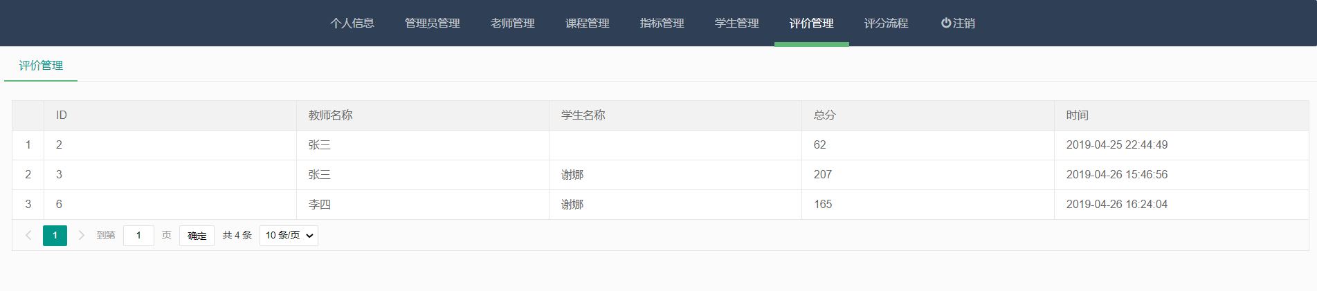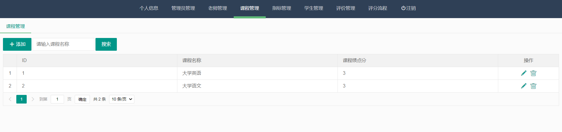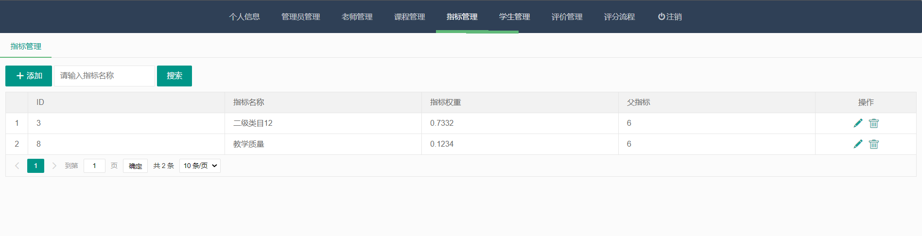 实现了老师信息、课程信息、学生信息、评价、评分、指标等管理便于高校进行智能化办公