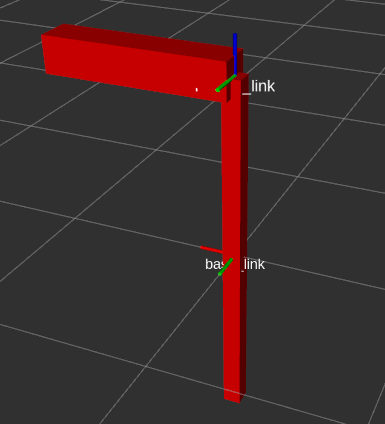 - 一个简单的模型,包含两个link,一个joint,以URDF为例,如下