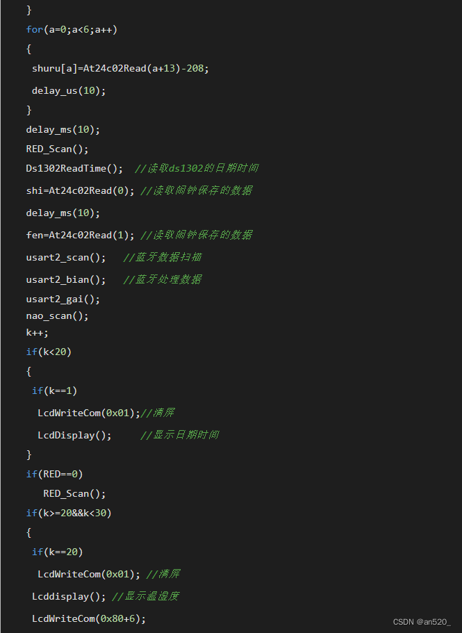以下是在校期间做的寝室防盗系统的部分代码(当时也存在部分BUG,没有解决。现在再看,其实很多问题,而且比较严重,比如中断服务函数内竟然有3000ms延时,这太可怕了,还有串口发送等等;由于实时性要求不算太高,因此主函数中的毫秒级别延时对系统运行没有多大影响,当然除BUG外;若是后期需要维护,那就是一个大工程,还不如推翻重写):