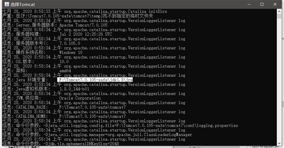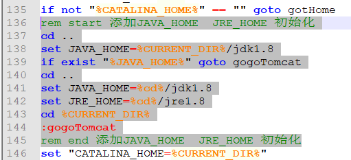rem end 添加JAVA_HOME JRE_HOME 初始化4. 修改完成,启动tomcat测试发现控制台输出当前使用jdk变量为当前目录的jdk