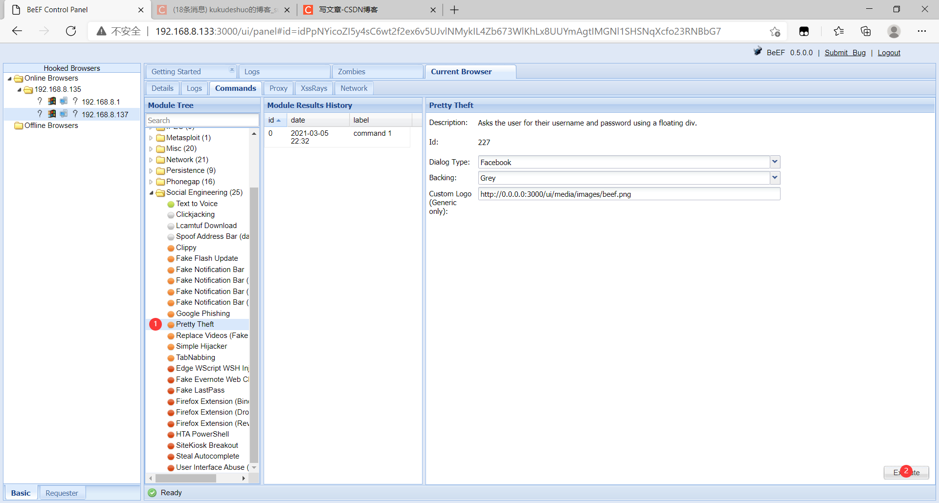 BeEF是浏览器攻击框架的简称,是一款专注于浏览器端的渗透测试工具