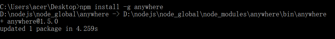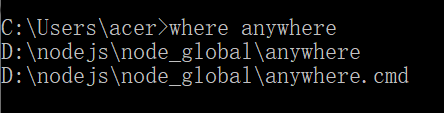 显示我的Nodejs模块安装途径在D:\nodejs\node_global